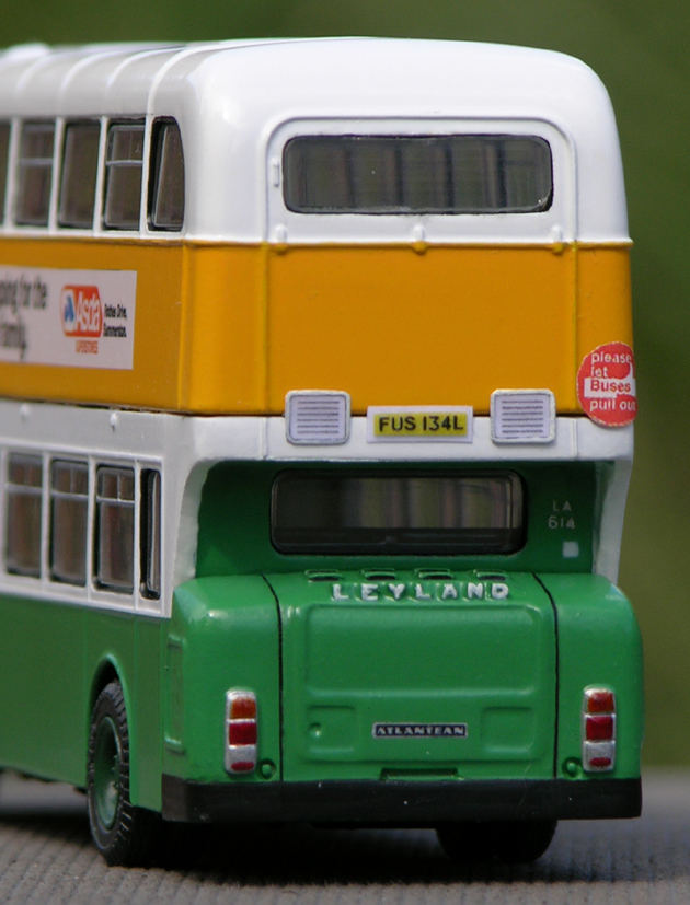 Upper deck rear window pillar removed, upper deck front window aerial cover added.