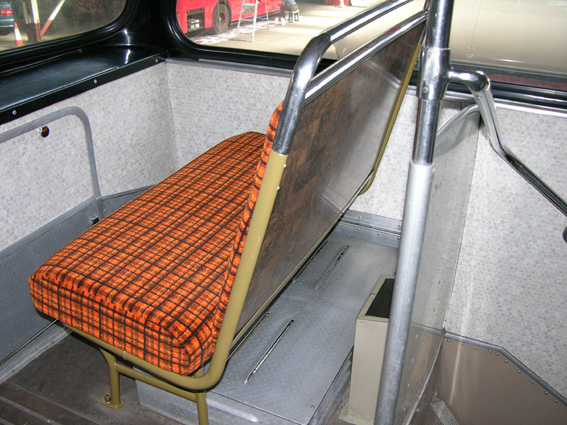An original driver's seat has also been trimmed and the anti-vandal fibreglass seats in the rear upper deck have all been removed and original replacements trimmed.