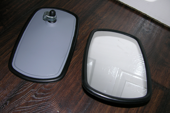 The large coach mirror has been removed (well actually it fell off!) and brand new correct pattern mounting brackets have been sourced together with new 1980 spec glass mirrors re-finished in grey. These will be fitted in due course.