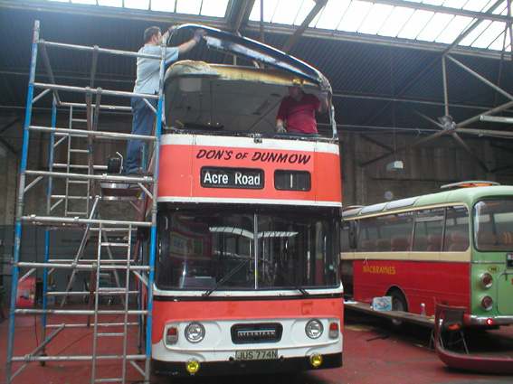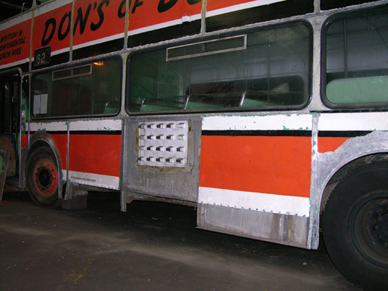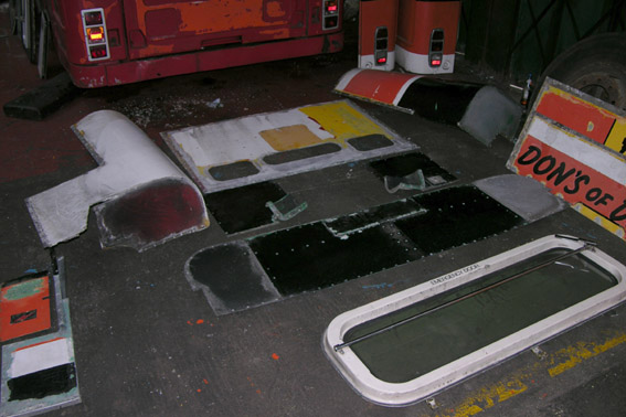 Sanding has also begun with the roof now stripped back. The Don's livery comes away fairly easily - possibly the bus was not prepared for it that thoroughly,