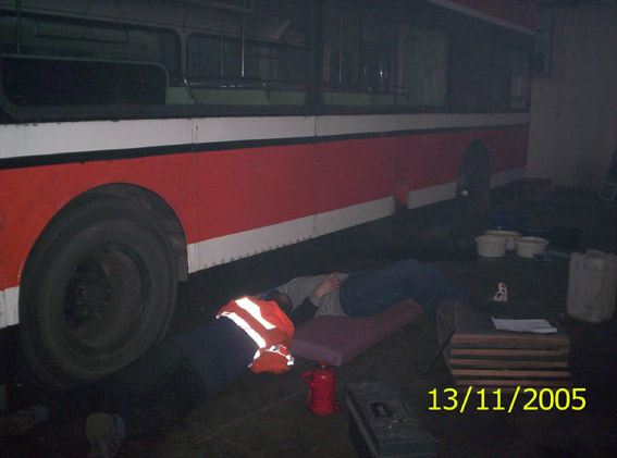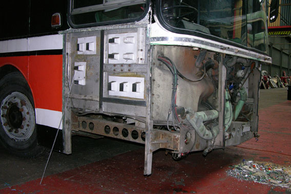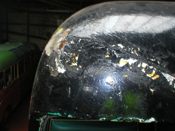 it became apparent that the bus had hit something very solid along the length of its coving and had been repaired