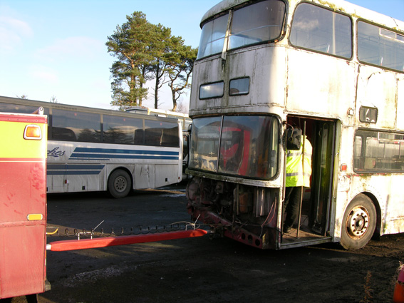 On Sunday the 9th, Dunsmore's wrecker took the carcass to Larkhall to meet it's final fate. There are a large number of parts available for sale from this bus so feel free to email me about anything you might need or want.