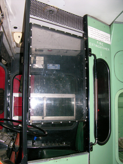 with the rear of the original back being retained. Although the leather is now a bit worn (and has yet to be deep cleaned), its authenticity is a nice touch. To finish the cab area, the anti-assault screens have now been fitted complete with hinged upper section and catch so that it can be maintained in the open position securely.