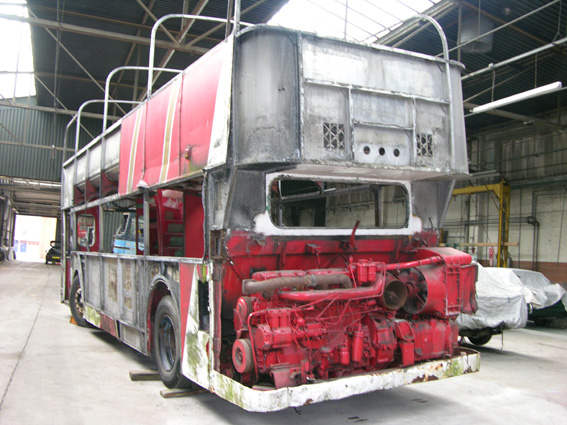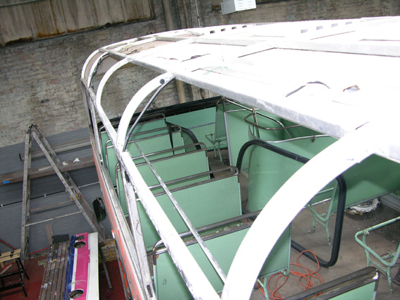 The roof dome was then peeled from the bus revealing a reasonably intact but dented inner dome.