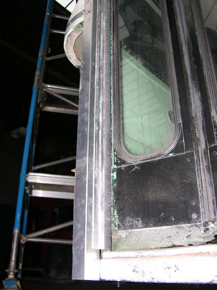 Meanwhile the vertical post which seperates the two halves of the windscreen was removed to fit the final part of the anti-assault screen and as some of it was found to be in poor condition, a new one was made from the best of the parts from LA843 and LA927.