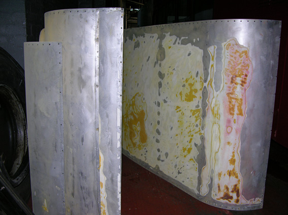 Most of the damaged panels have been removed and are being replaced using new material and good panels salvaged from LA843 including the rear upper panel which had never been modified -