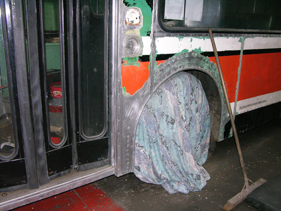 which had pushed the inner dome into the bus and burst the two skins apart. To make matters worse,