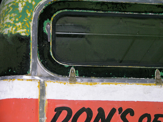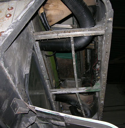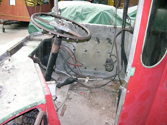 The upper windscreen and several side windows were removed, one of which had been replaced at some time with an unusual two-pane arrangement.